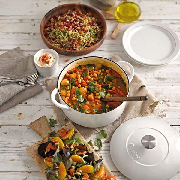 Denby cast iron is energy efficient – heating up faster and staying hot for longer. It is suitable for all hob types, including induction and is oven safe up to 250°C. Integrated basting rings help keep food deliciously succulent whilst the tight fitting lids help to seal in moisture for even cooking. Easy grip handles provide confidence when lifting and transferring to, and from, the oven.