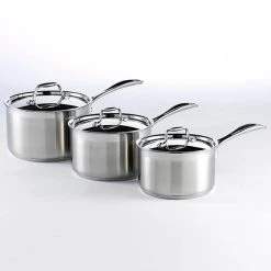 The pan is finished with a combination of mirror-polished and satin for a unique and modern look and comes complete with a matching stainless steel lid.