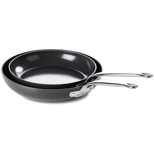 Oven safe & dishwasher safe. The GreenPan Barcelona Ceramic Non-Stick Frying Pan Set is supplied with a GreenPan lifetime guarantee.