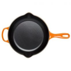 The stainless steel handle is riveted for durability and comfort and is suitable for oven use.