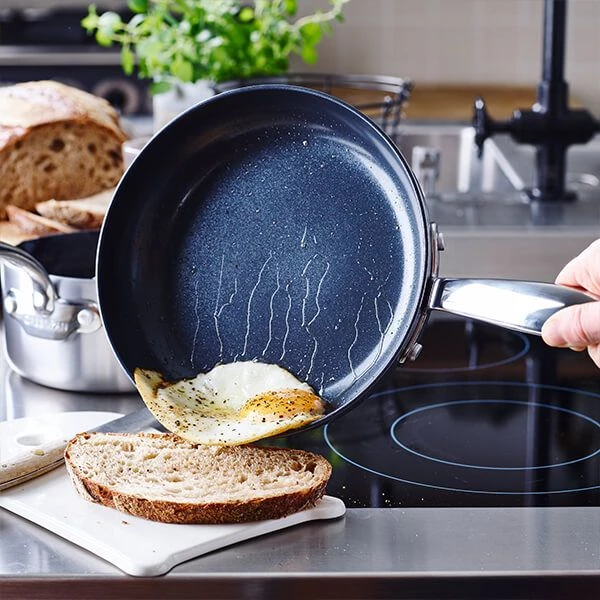 The GreenPan Barcelona Evershine 24cm Frypan combines the excellent heat conduction of aluminium with the long lasting quality of stainless steel. Complete with Thermolon Infinity ceramic non-stick that is enhanced with diamonds for an extremely durable non-stick coating, this frying pan is metal utensil safe and allows excellent release and clean up. The versatile induction base gives fast and consistent heating on all hob types including induction, Evershine™ stainless steel technology protects against heat discoloration to keep your cookware looking new for many years to come. Finished with a cast stainless steel handle that fit perfectly in your hands and add an elegant look and feel. Although dishwasher safe, it is recommended you handwash this product. Oven safe.
