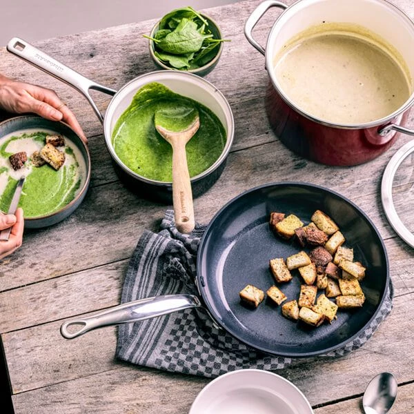 Designed for everyday use, this medium sized frying pan is packed full of innovative features such as GreenPan’s PFAS-free Thermolon Infinity Professional ceramic non-stick coating. The addition of ScratchGuard technology makes this frying pan extremely scratch-resistant for amazing durability. The excellent performance of this ceramic non-stick coating also means less oil is required when cooking. Plus, thanks to the BalancePro base technology, the base will stay perfectly flat during use, so there’s no danger of oil running to one side of the pan.