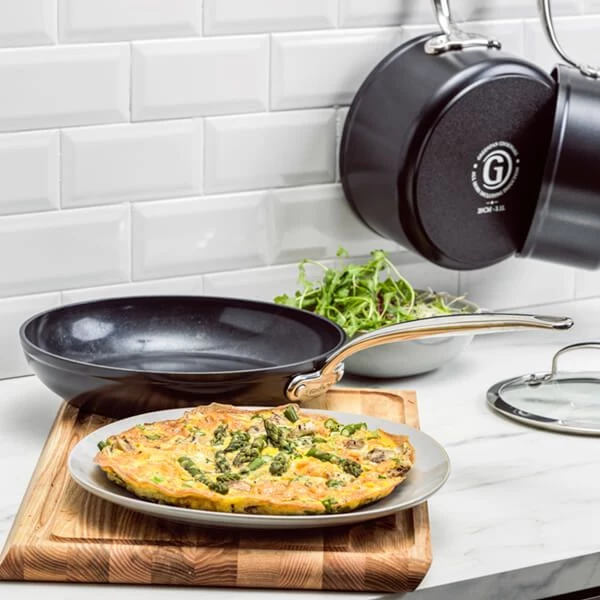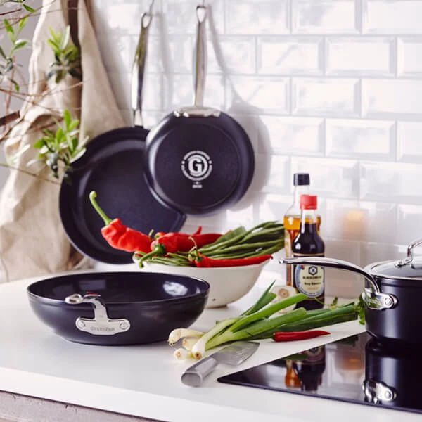 Designed for everyday use, this wok is packed full of innovative features such as GreenPan’s PFAS-free Thermolon Infinity Professional ceramic non-stick coating. The addition of ScratchGuard technology makes this wok extremely scratch-resistant for amazing durability. The excellent performance of this ceramic non-stick coating also means less oil is required when cooking. Plus, thanks to the BalancePro base technology, the base will stay perfectly flat during use, so there’s no danger of oil running to one side of the pan.