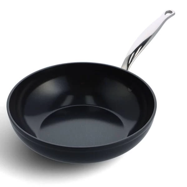 With a timeless and sophisticated design, the GreenPan Barcelona Pro Aluminium Non-Stick 28cm Wok looks resplendent with its mirror finish stainless steel handle contrasting against its pitch black body.