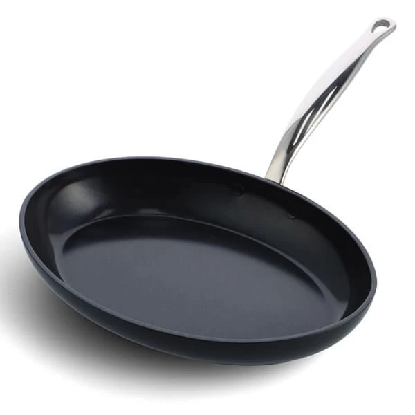 Designed for everyday use, this fish pan is packed full of innovative features such as GreenPan’s PFAS-free Thermolon Infinity Professional ceramic non-stick coating. The addition of ScratchGuard technology makes this oval pan extremely scratch-resistant for amazing durability. The excellent performance of this ceramic non-stick coating also means less oil is required when cooking. Plus, thanks to the BalancePro base technology, the base will stay perfectly flat during use, so there’s no danger of oil running to one side of the pan.