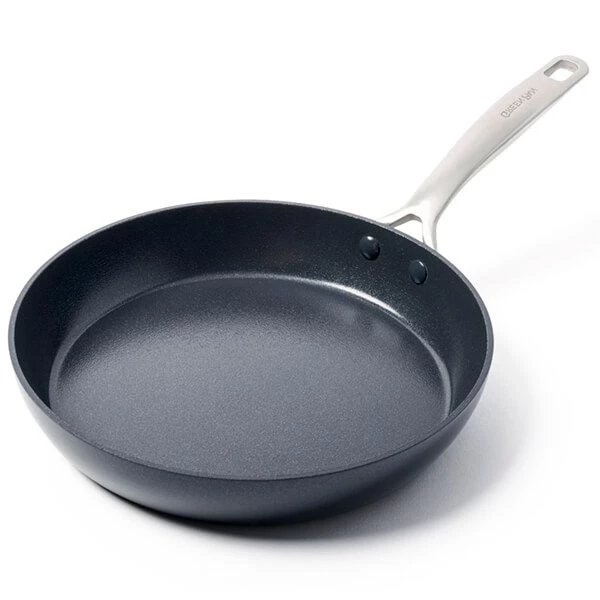 Finished with a matte stainless steel handle, this stylish frying pan from GreenPan is oven safe (to 220°C) and dishwasher safe, although hand washing is recommended.