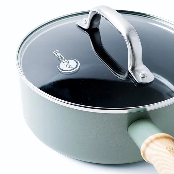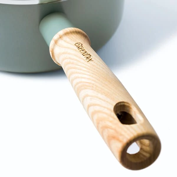 The GreenPan Mayflower 3 Piece Saucepan Set With Lids contains 1 x 16cm saucepan, 1 x 18cm saucepan, 1 x 20cm saucepan. Each saucepan is coated with GreenPan’s Thermolonâ„¢ Infinity ceramic non-stick coating which is enhanced with diamonds for an extremely durable cooking surface. Each pan has an extra thick forged base for even heat distribution and stability on the hob. Complete with a wooden stay-cool handle with ergonomic comfortable grip.