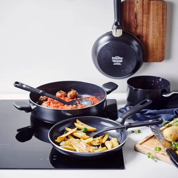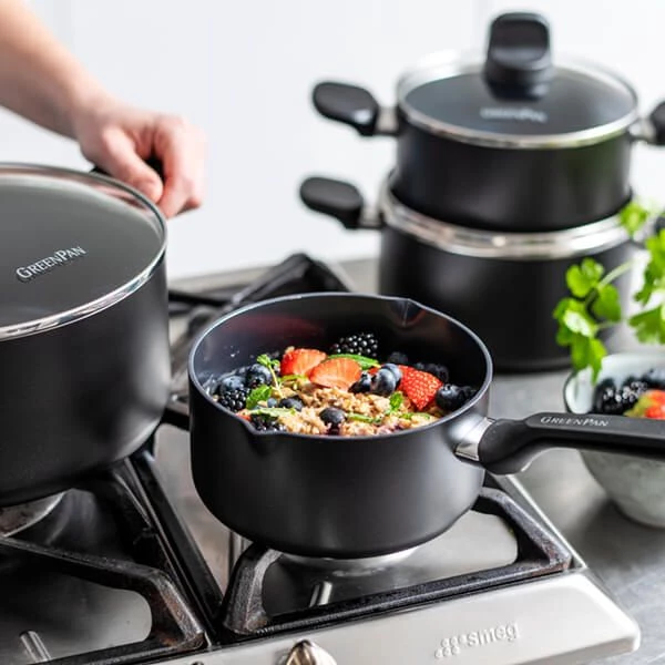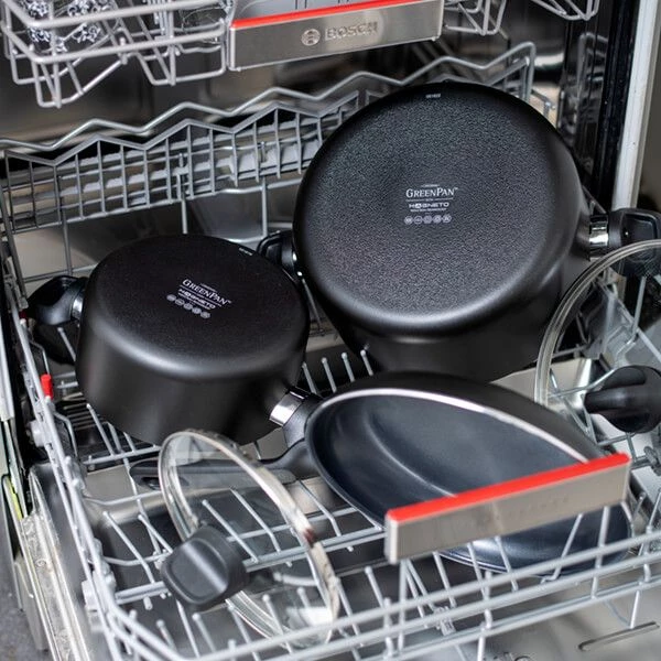 Finished with an ergonomically designed stay-cool handle, each pan from GreenPan is oven safe (to 180°C) and dishwasher safe, although hand washing is recommended.