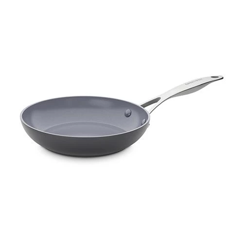 The GreenPan Infinity Thermolon ceramic non-stick enhanced with Diamonds provides a tough cooking surface with quick heating and enhanced durability without toxic fumes and made from all natural materials.