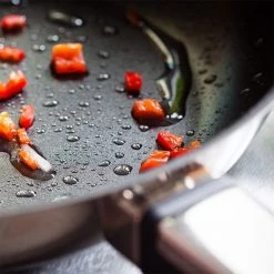 The GreenPan Infinity Thermolon ceramic non-stick enhanced with Diamonds provides a tough cooking surface with quick heating and enhanced durability without toxic fumes and made from all natural materials.