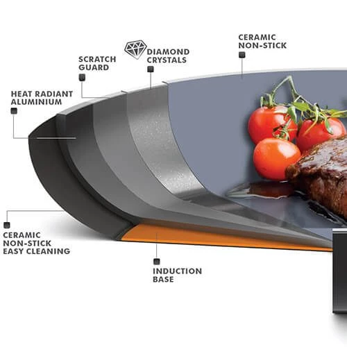 The Venice Pro’s interior has a Thermolon Infinity Ceramic non-stick coating which is enhanced with diamonds, making it extremely durable.