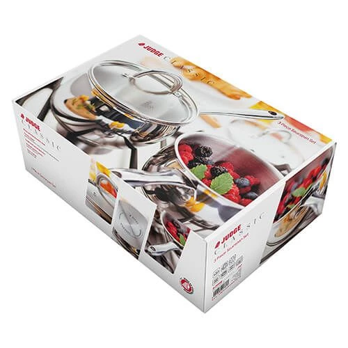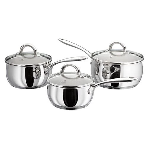 This Judge Classic 3 Piece Saucepan Set comprises 16cm, 18cm and 20cm saucepans.