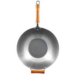The long phenolic handle ensures it is easy to carry and perfectly balanced so won’t topple over, it is secured tightly to the wok with two rivets so you can be assured it won’t become loose and wobbly over time. The large metal loop on the end allows for easy storage as you can simply hang up your wok when not in use. With an ideal capacity for cooking up a tasty meal for 3 – 4 people.