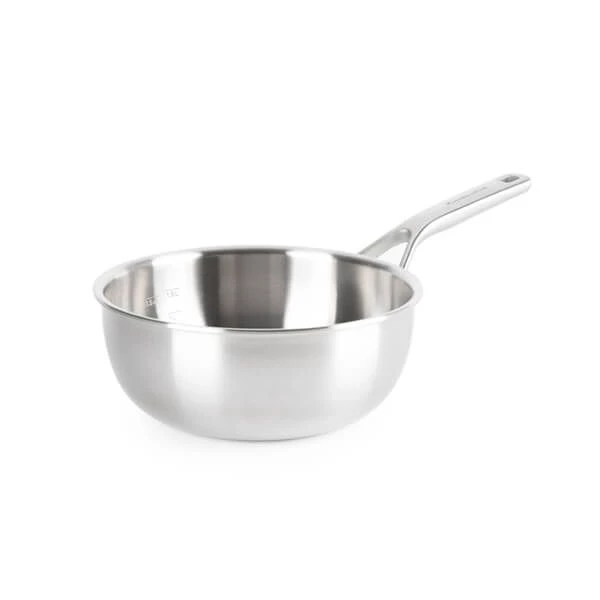 Suitable for use on all heat sources, including induction, KitchenAid multi-ply stainless steel cookware has an aluminium core that delivers consistent, even heat transfer for precision cooking. Oven safe to 200°C and with a capacity of 3.1 litres. Other innovative features include stay-cool cast stainless steel handles and curved rims for drip-free pouring. Handy internal measuring marks are also featured on this chef’s pan. And unlike many stainless steel ranges, KitchenAid multi-ply stainless steel features sealed rims and a seamless interior which prevents corrosion.