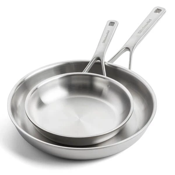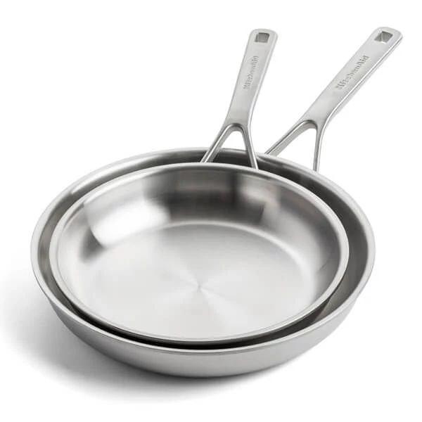 Made to perform and to last a lifetime, the KitchenAid Multi-Ply Stainless Steel 24cm & 28cm Frying Pan Set delivers performance and style in a beautiful brushed finish. This 2 piece set comprises a 24cm frying pan and a 28cm frying pan.