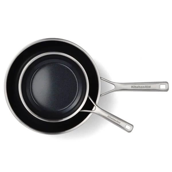 Made to perform and to last a lifetime, the KitchenAid Multi-Ply Stainless Steel Ceramic Non-Stick 20cm & 28cm Frying Pan Set delivers performance and style in a beautiful brushed finish. This 2 piece set comprises a 20cm non-stick frying pan and a 28cm non-stick frying pan.