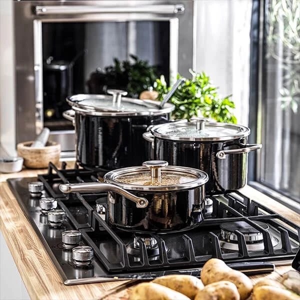 Part of the KitchenAid Steel Core Enamel range, a collection of cookware that has been meticulously designed for an optimal cooking experience. The steel core provides excellent heat retention and an extra durable closed stainless steel rim ensures drip-free pouring. Stainless steel stay-cool handles allow you to take your casseroles from stovetop to table, and tempered glass lids provide easy monitoring. A collection designed to create and made to last.