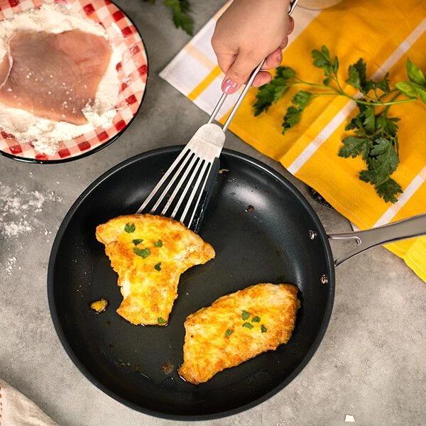 The 3 layer non-stick coating features titanium particles, ensuring the frying pan is easy to use as well as easy to clean.