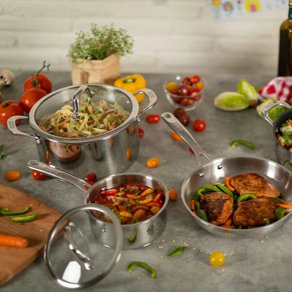 BENEFITS TO 18/10 STAINLESS STEEL COOKWARE: First of all, this type of cookware is far more durable and will retain its attractive appearance for longer. 18/10 stainless steel includes 18% chromium and 10% nickel: the chrome provides hardness and rust resistance, whereas the nickel is extremely rust, corrosion and stain resistant.