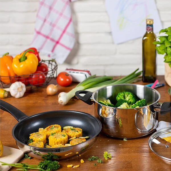 BENEFITS TO 18/10 STAINLESS STEEL COOKWARE: First of all, this type of cookware is far more durable and will retain its attractive appearance for longer. 18/10 stainless steel includes 18% chromium and 10% nickel: the chrome provides hardness and rust resistance, whereas the nickel is extremely rust, corrosion and stain resistant.