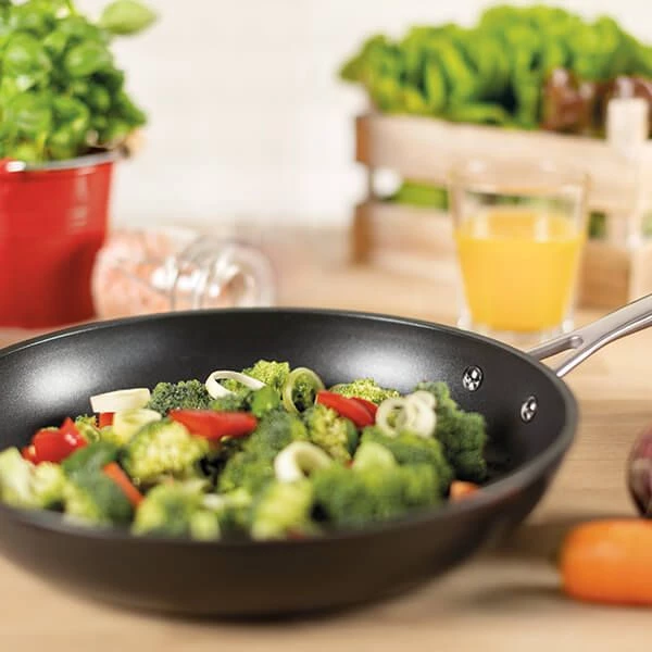 Forged aluminium absorbs, stores and spreads heat really efficiently, to help promote even cooking, no hot spots and reduce the need for high heats.
