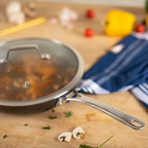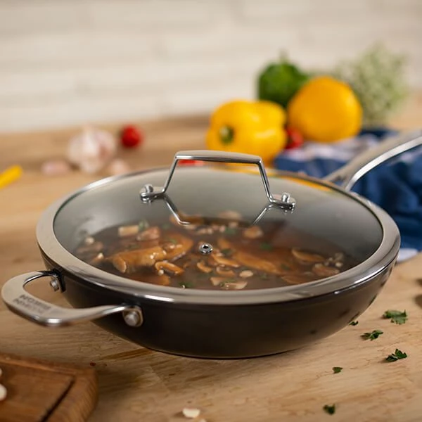 Use this cookware as a deep frying pan or as a sauté pan with or without the lid to cook all sorts of braised dishes such as a goulash or a ratatouie. The Kuhn Rikon Easy Pro Induction Saute Pan 28cm is also a great pan for risottos and other rice dishes.