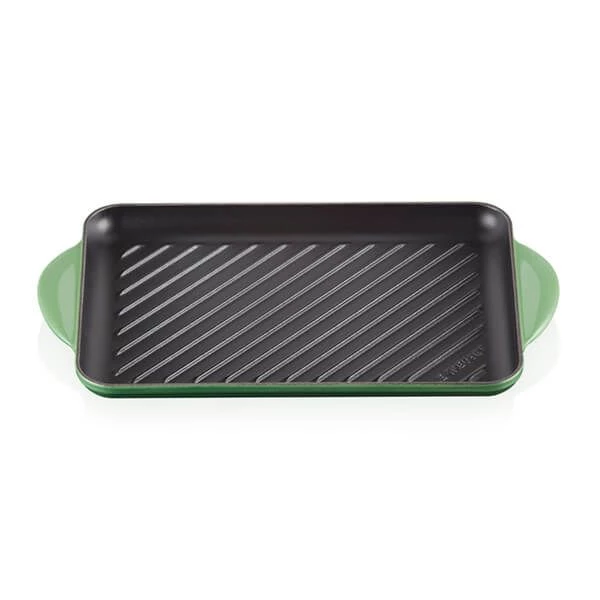 The Le Creuset Bamboo 32cm Cast Iron Rectangular Grill is made in France and is supplied with a Le Creuset lifetime guarantee.