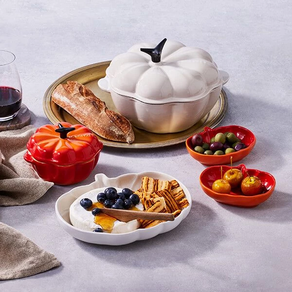 Crafted from premium cast iron, the Le Creuset Cast Iron Pumpkin Casserole 22cm Meringue is perfect for warming soups and hearty dishes throughout the colder months. It’s also ideal for serving up snacks and sweets at Halloween.