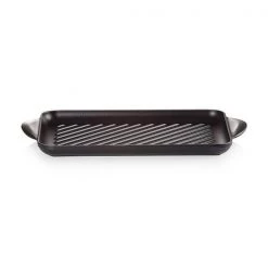 The Le Creuset 32cm Cast Iron Rectangular Grill in Satin Black gives you all the delicious flavours of an outdoor grill from the comfort of your kitchen! This cast iron grill plate is perfect for steaks, chicken, fish and vegetables and will seal in moisture whilst giving your food those must-have char lines.