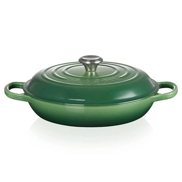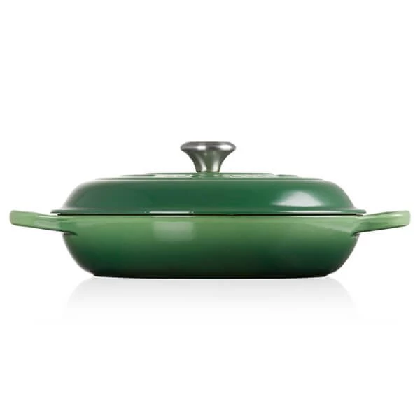 The Le Creuset Signature Bamboo Cast Iron 30cm Shallow Casserole is considered one the most versatile cookware items as it is perfect as a stir-fry pan, baking and serving dish. From tender and flavourful meat to creamy risottos, the large flat shape and shallow sides of the shallow casserole are ideal for browning meat and vegetables, simmering casseroles, stir frying and baking.