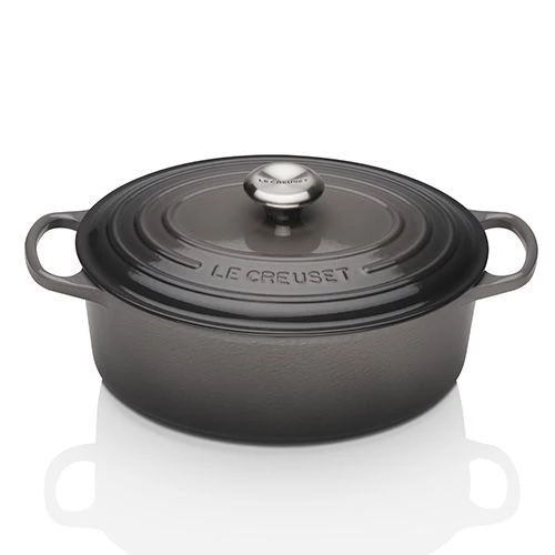 NEW from Le Creuset, Le Creuset Signature Cast Iron Casseroles available in round, oval and shallow buffet with improved easy-grip, 45% larger handles; new advanced sand interior enamel; stylish, heat resistant stainless steel knob and an enhanced tight fitting lid.