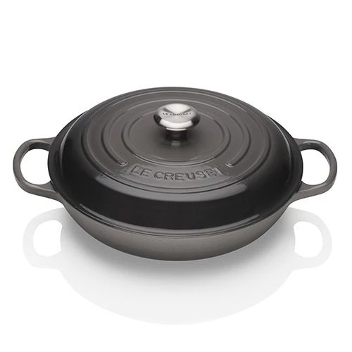 NEW from Le Creuset, Le Creuset Signature Cast Iron Casseroles available in round, oval and shallow buffet with improved easy-grip, 45% larger handles; new advanced sand interior enamel; stylish, heat resistant stainless steel knob and an enhanced tight fitting lid.