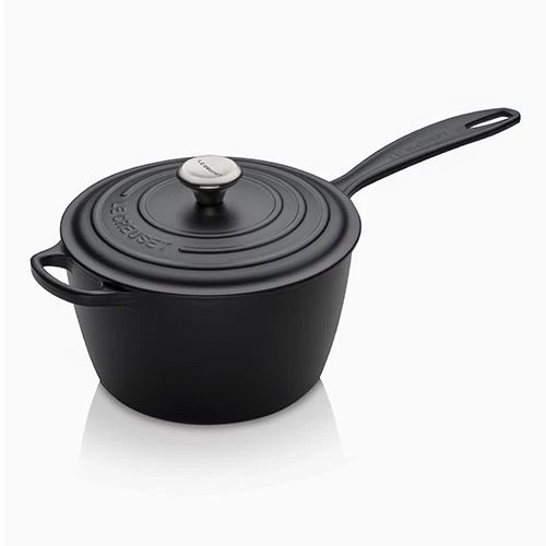 Le Creuset is proud to introduce new Signature features to the saucepans, including: more capacity; new, easier to clean sand enamel interior; new easy-grip larger helper handle for easy transfer from hob to table and added versatility thanks to the ovenproof integral iron handles and stainless steel knob. The saucepans are suitable for use on all hob types, including induction, and in the oven.
