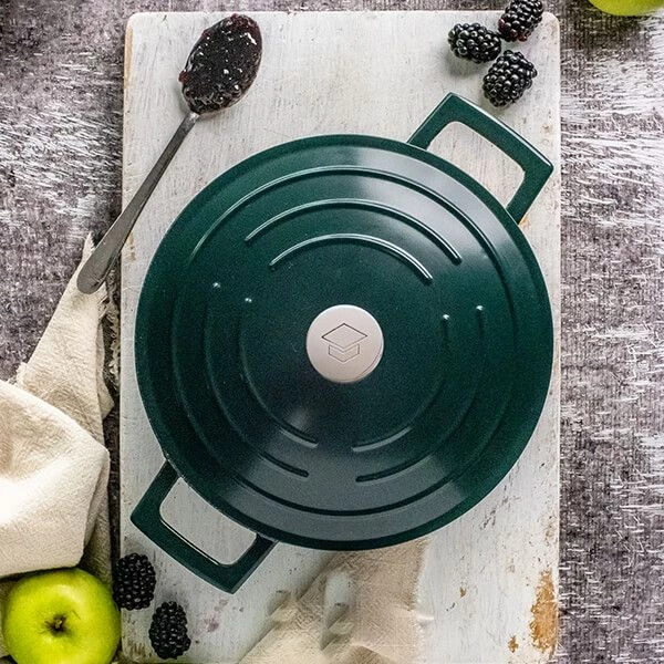 Strong and dependable, this MasterClass Cast Aluminium Casserole Dish in stunning Hunter Green, is considerably lighter than cast iron but just as strong. Aluminium is a great conductor of heat allowing food to be cooked quickly and evenly on the hob and in the oven.