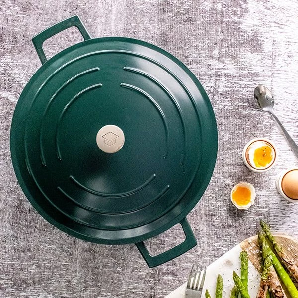 Strong and dependable, this MasterClass Cast Aluminium Casserole Dish in stunning Hunter Green, is considerably lighter than cast iron but just as strong. Aluminium is a great conductor of heat allowing food to be cooked quickly and evenly on the hob and in the oven.