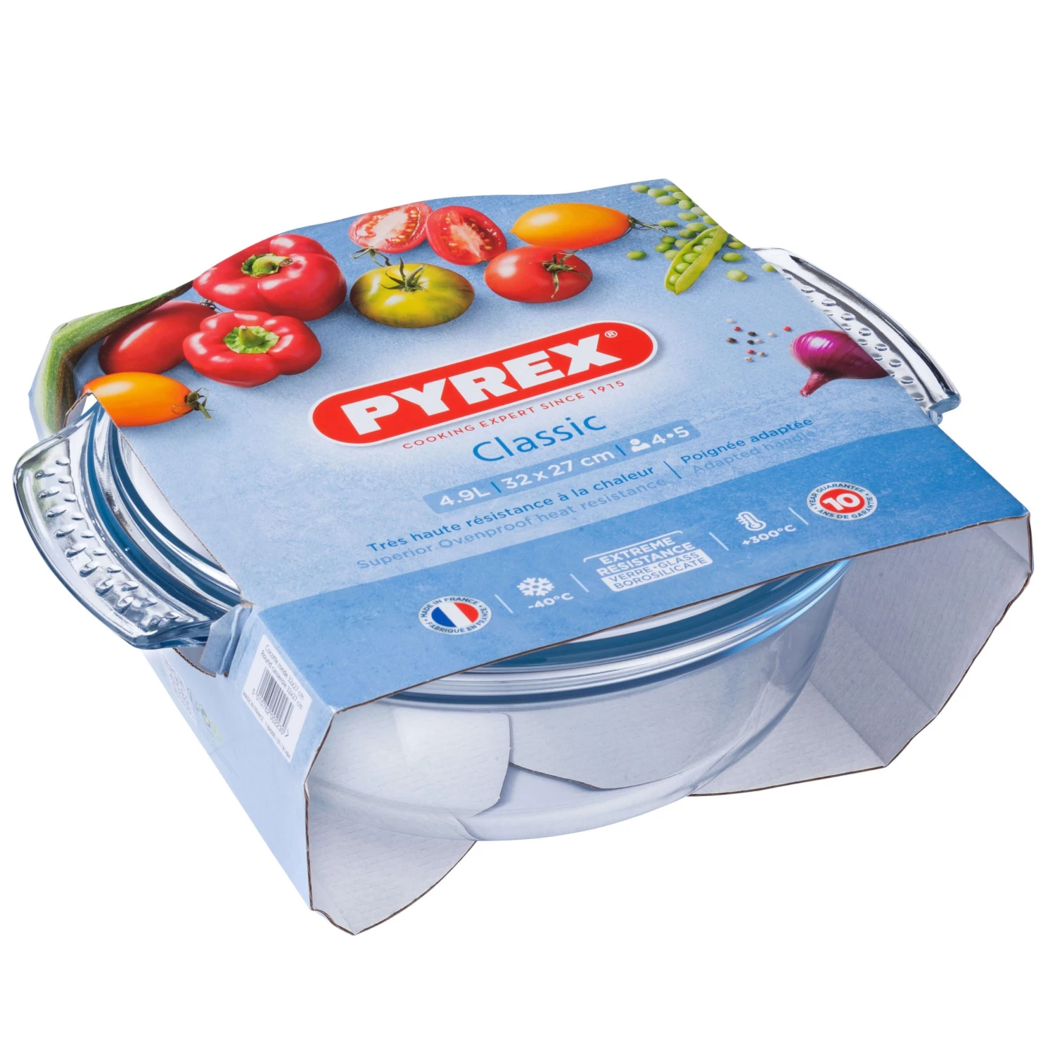 The Pyrex Classic Easy Grip 3.5L Casserole is manufactured in France from borosilicate glass. As well as being BPA free, Borosilicate is also hygienic and resistant to stains, odours and scratches. It is also able to withstand extreme temperatures, from -40°C to +300°C and is thermal shock resistant up to 220°C – it can go straight from the freezer (-20°) into a hot oven (200°C).
