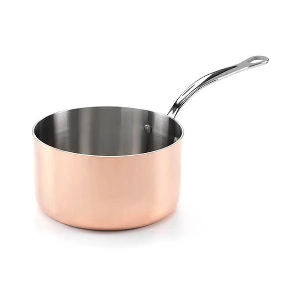 This Samuel Groves copper induction 18cm saucepan features a 4 layer construction with a stainless steel interior for even cooking preventing heat spots and an attractive copper exterior finish. The saucepan also comes with a matching copper lid with a riveted stainless steel handle.