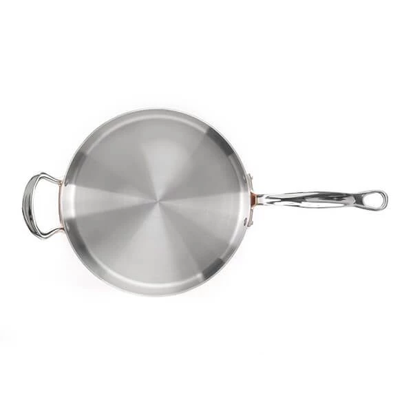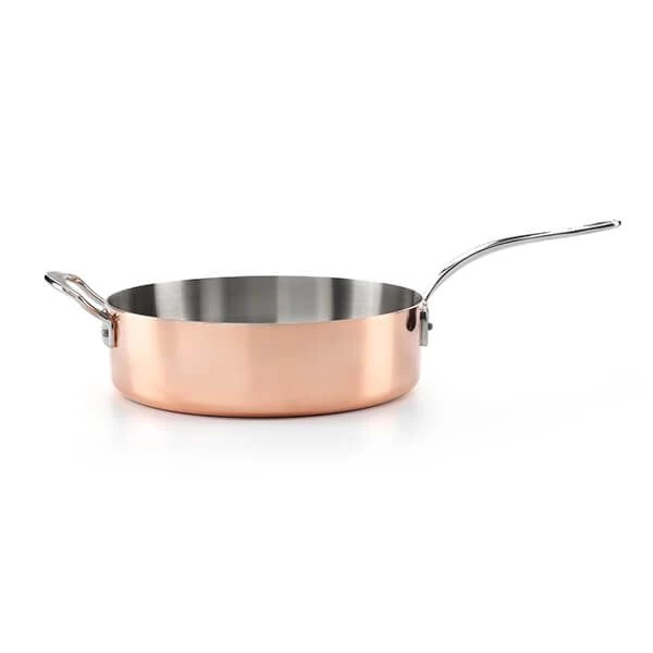 This Samuel Groves copper induction 26cm saute pan features a 4 layer construction with a stainless steel interior for even cooking preventing heat spots and an attractive copper exterior finish. The saucepan also comes with a matching copper lid with a riveted stainless steel handle.