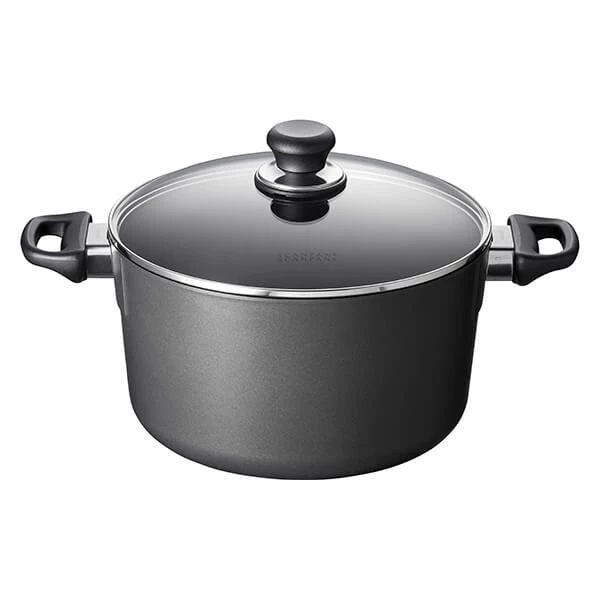The Scanpan Classic Induction 26cm casserole with lid features a unique Stratanium coating which prevents food from sticking whilst cooking. The even heat distribution of the casserole means there are no hotspots during cooking ensuring a healthy and even cook. The 26cm casserole only requires a moderate heat to cook and fry foods as the construction retains heat evenly, saving energy. The casserole is suitable for use on all hob types including induction and can be used for browning and finishing off cooking in the oven up to 260°C. The handles either side of the 26cm casserole are secured in place with a patented locking system – guaranteed not to come loose along with the bases that are guaranteed never to warp. Complete with a clear lid which allows food to be monitored and can also be used in the oven up to 260°C. The 26cm classic induction casserole is dishwasher safe for easy and convenient cleaning.