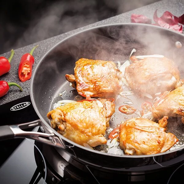 The Stellar Induction 28cm non-stick frying pan features a durable triple layer Teflon Pro Platinum non-stick PFOA free cooking surface for easy food release when cooking.