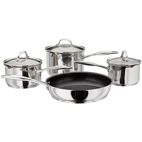 This Stellar 7000 Four Piece Draining Set comprises 1 x 14cm Saucepan with Lid, 1 x 16cm Saucepan with Lid, 1 x 18cm Saucepan with Lid and 1 x 26cm Non-Stick Frypan.