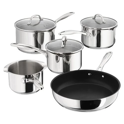 Premium mirror polished 18/10 stainless steel with cast stainless steel handles