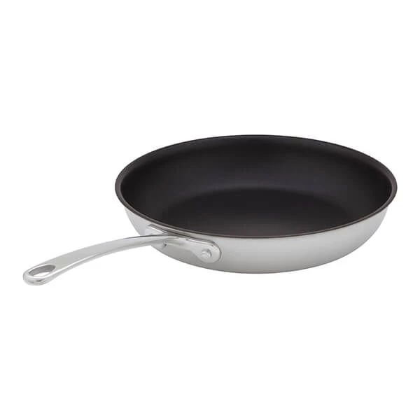 The brushed stainless steel exterior of the pan is sleek and sophisticated and includes a riveted polished steel handle.
