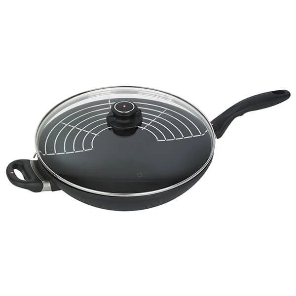 This Swiss Diamond XD Induction 28cm Wok with Lid & Tempura Rack is perfect for cooking your favourite Asian dishes without the need for additional oil. No need to scrub or soak this wok, thanks to the diamond reinforced non-stick surface that provides years of trouble free cooking and easy clean up. Simply wash with warm water and a soft, soapy sponge for immediate food release. Contains an extra thick aluminum base that will not tip, spin or warp. Provides uniform heat distribution consistently. Supplied with a heat tempered glass lid that features an adjustable steam vent, allowing you complete control over the amount of moisture in your dish. Oven safe up to 260°C. Dishwasher safe though hand washing recommended.