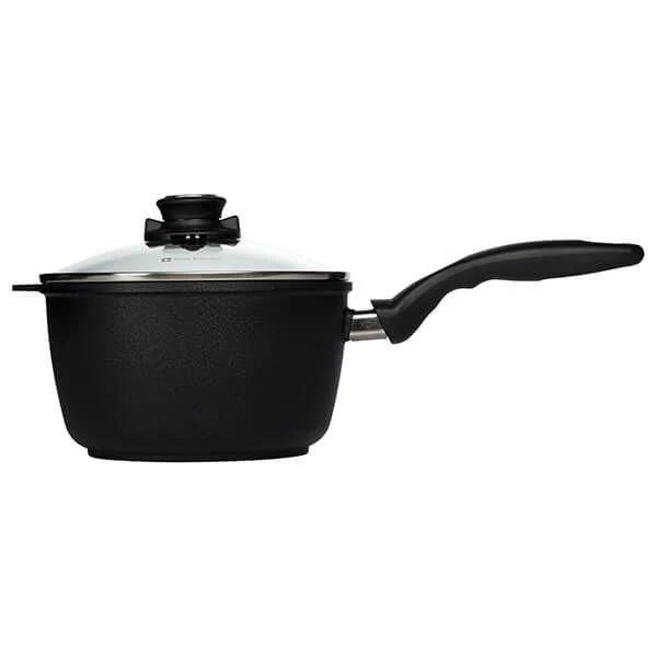 The Swiss Diamond XD Induction 3L 20cm Saucepan With Lid requires no scrubbing or soaking, making clean-up a breeze. Complete with Swiss Diamond’s patented non-stick coating that is reinforced with real diamond crystals for unparalleled durability and resilience, ideal for a lifetime of cooking excellence. This saucepan is oven-safe up to 260°C and dishwasher safe but hand washing is recommended. Suitable for use on the following hobs: induction, solid plate, radiant ring, ceramic, halogen and gas. Finished with an ergonomic handle that is designed to stay cool on the hob and is securely attached to the pan without interior rivets to prevent bacteria build up. Heat-tempered glass lid included. 3L capacity.