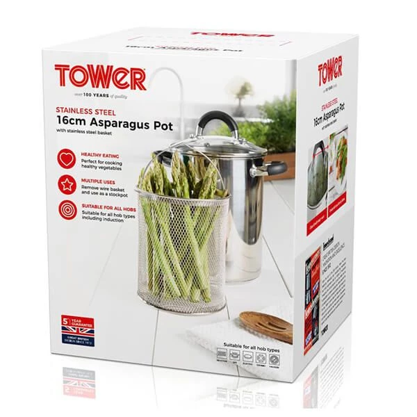 The Tower Essentials 16cm asparagus steamer is made from high grade stainless steel with a removeable steam basket.
