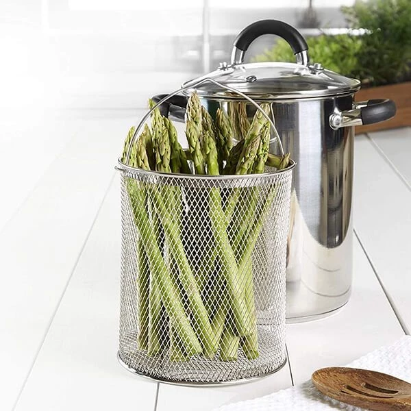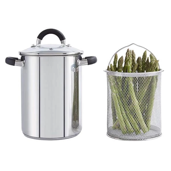 Designed to perfectly cook asaparagus perfectly and also suitable for other veggies like corn on the cob.